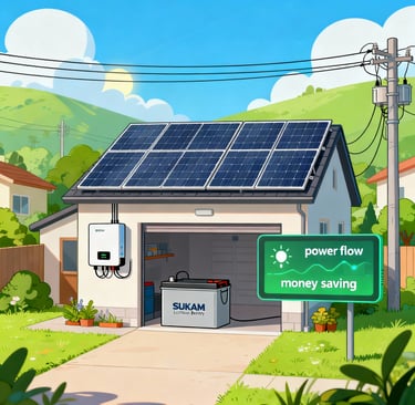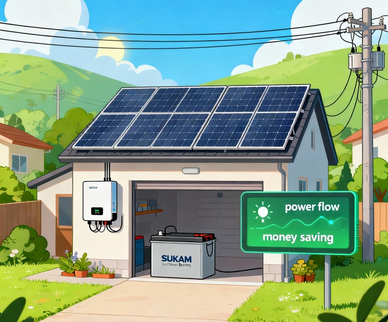 hybrid solar system :- combines solar panels, battery storage, and a connection to the electrical grid, offering both self-sufficiency and grid backup.